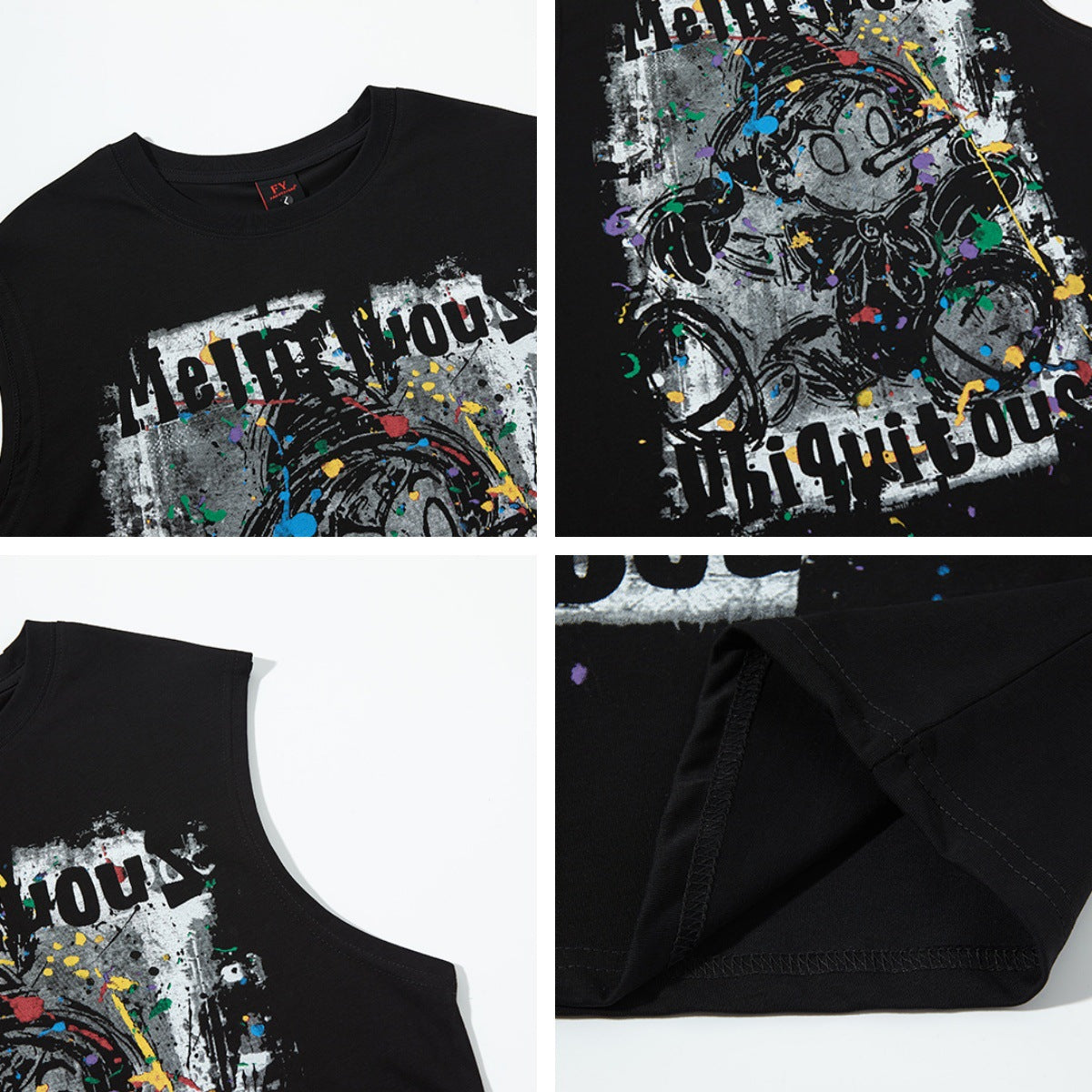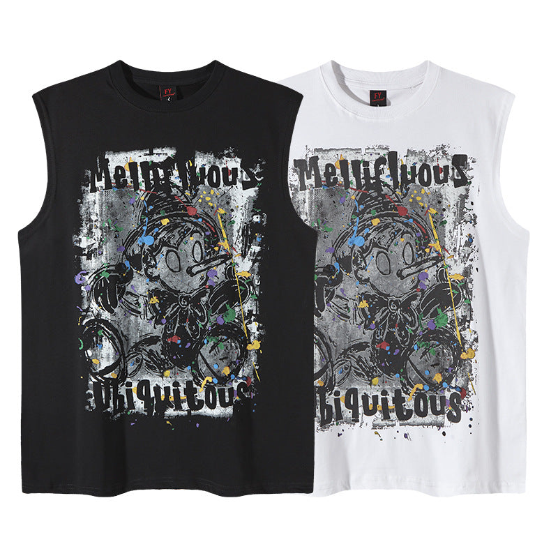 | Loose sleeveless tank with bold cartoon letter print. Built for hot street days. |