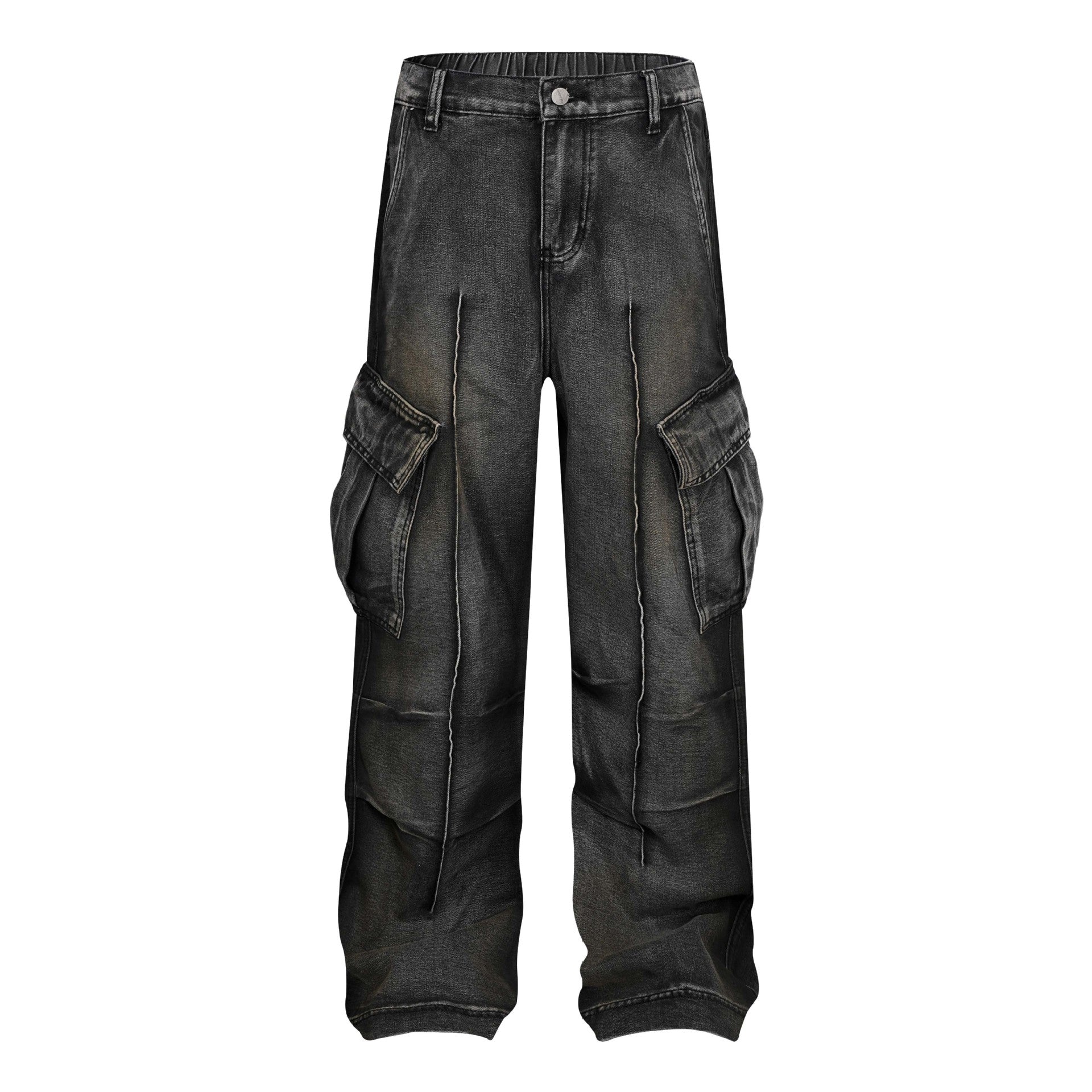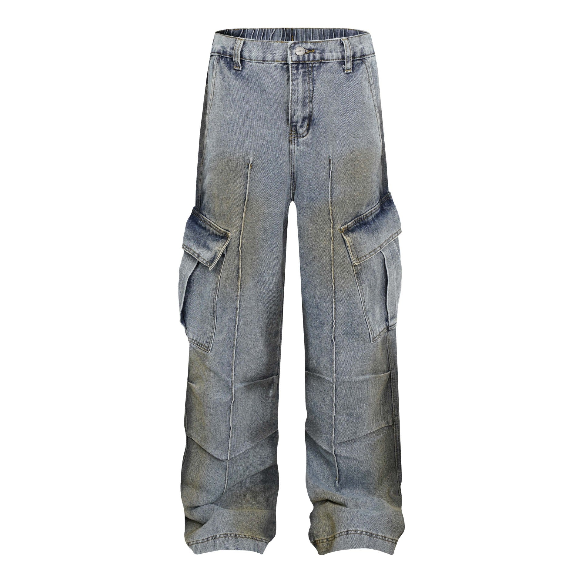 Washed denim with pleated leg seams and reinforced pockets. A modern workwear essential.