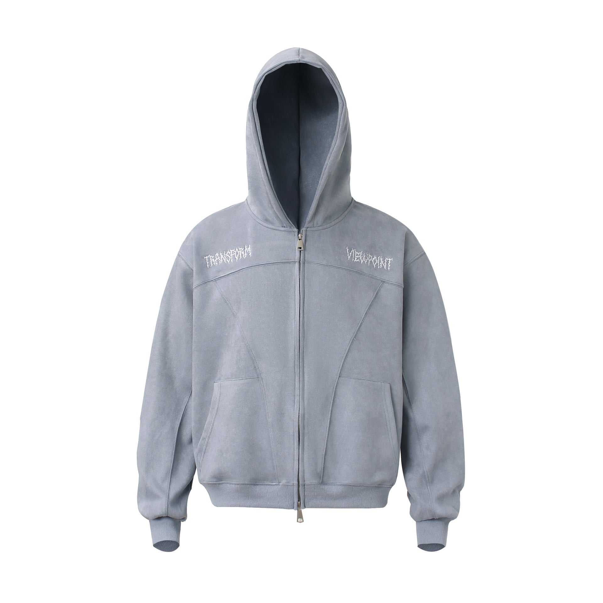 Smooth suede feel, oversized shape, subtle embroidery. A winter essential that defines calm power.