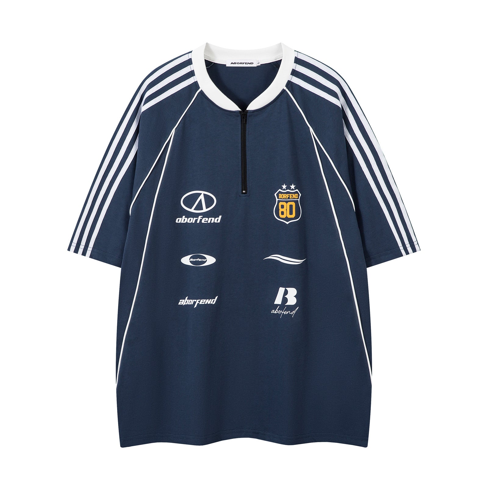 Lettered cotton half-zip with comfort stretch and relaxed cut.