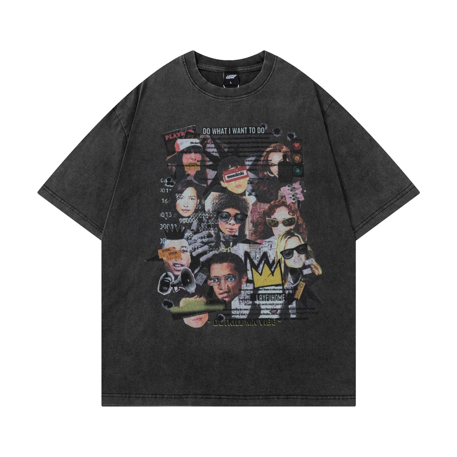 Artistic blurred portrait graphic tee. Classic cut with expressive tone.