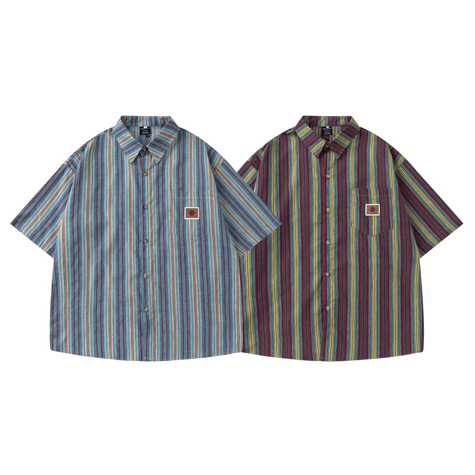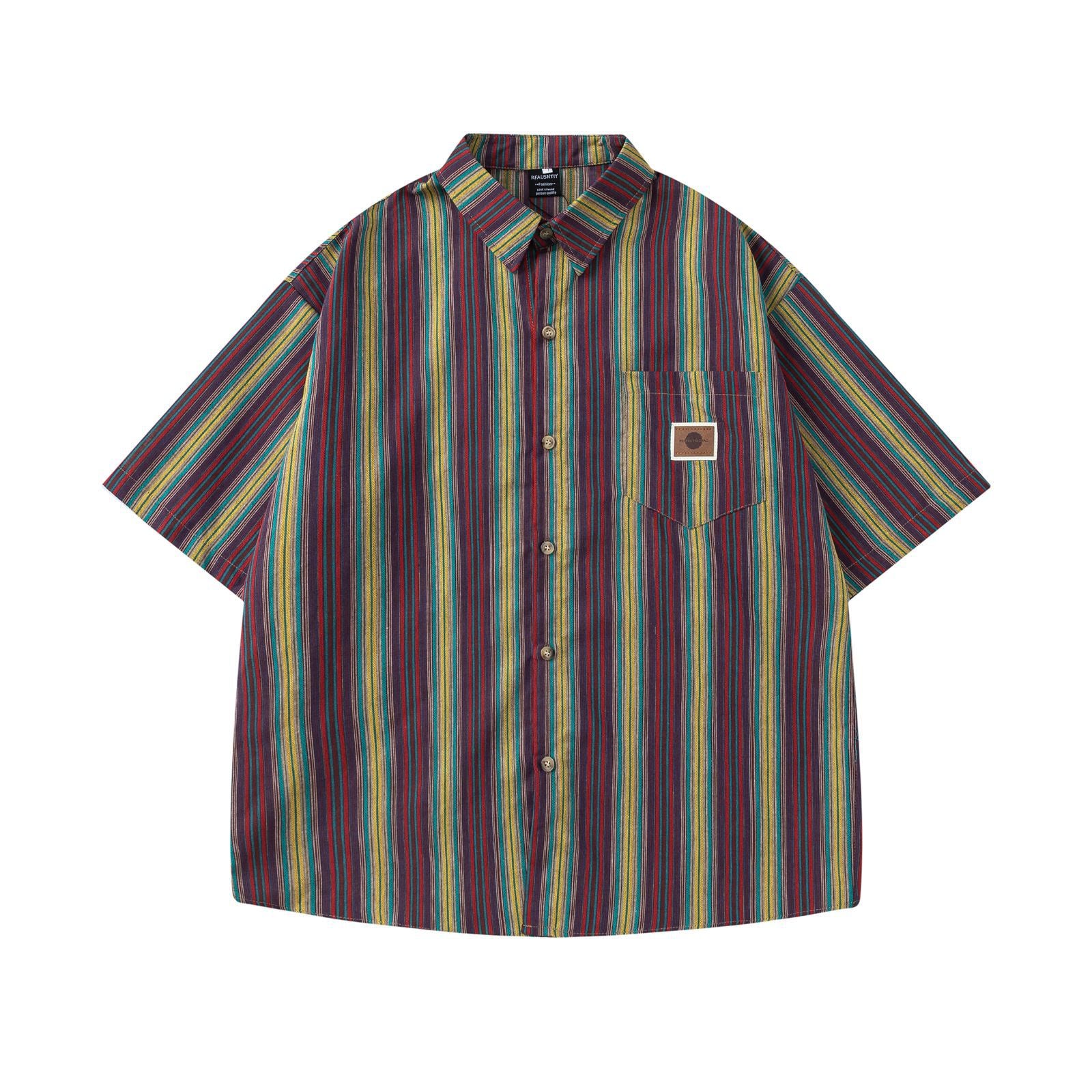 | Short sleeve shirt with retro colorful stripes. Clean-cut and casual. |