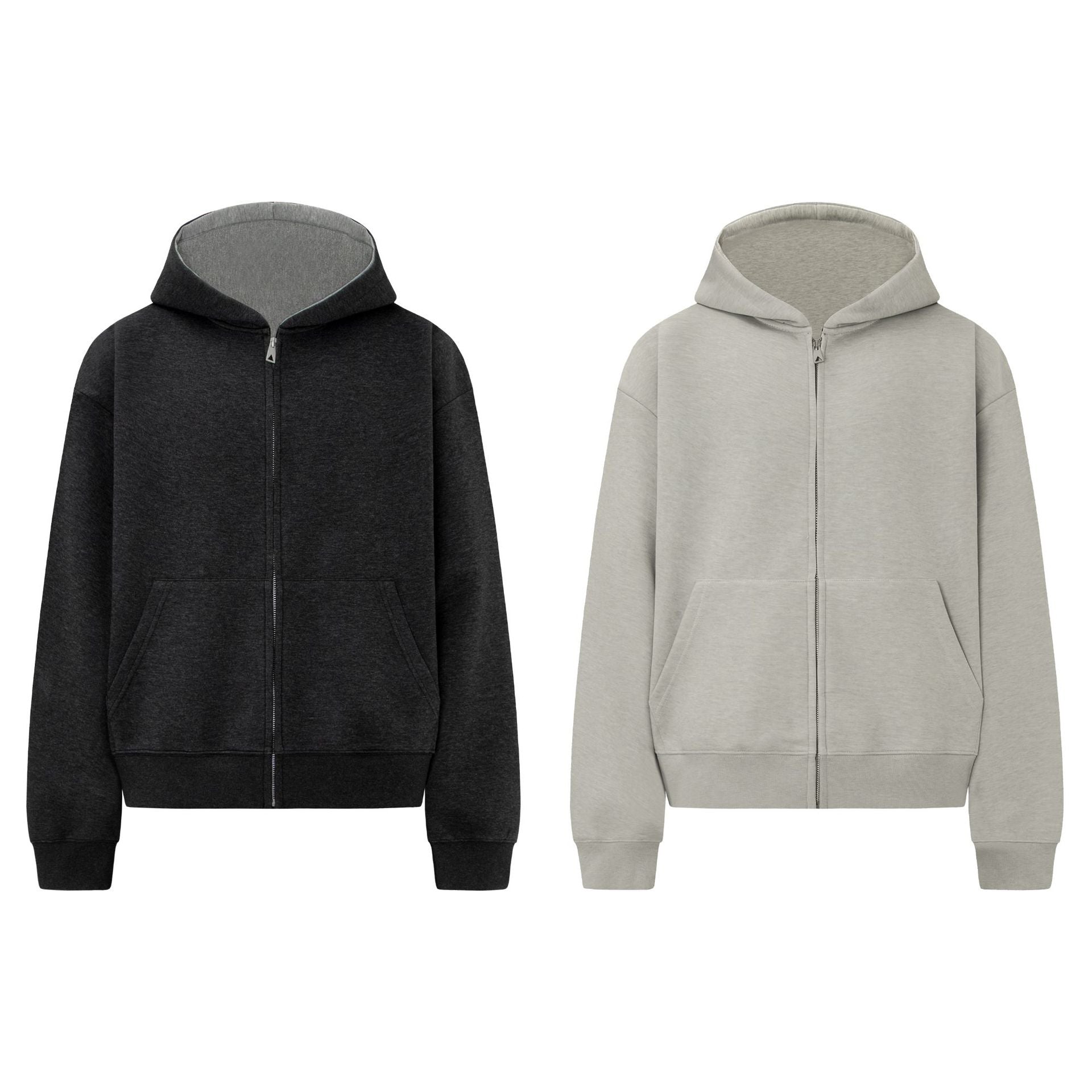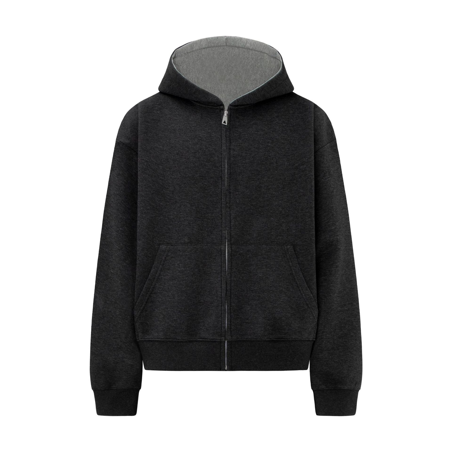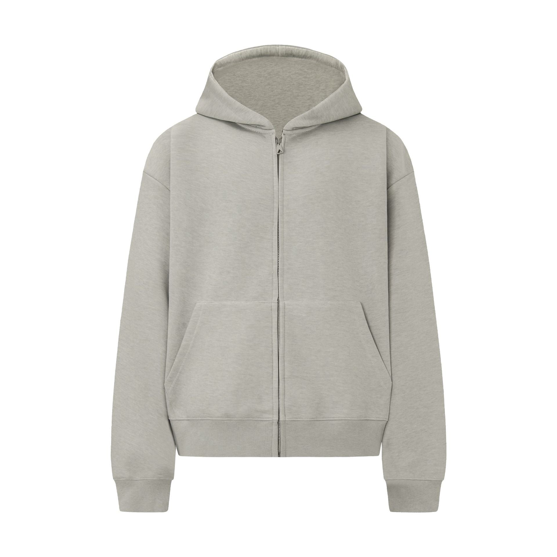 Fleece hoodie with subtle floral yarn detailing and warm interior.