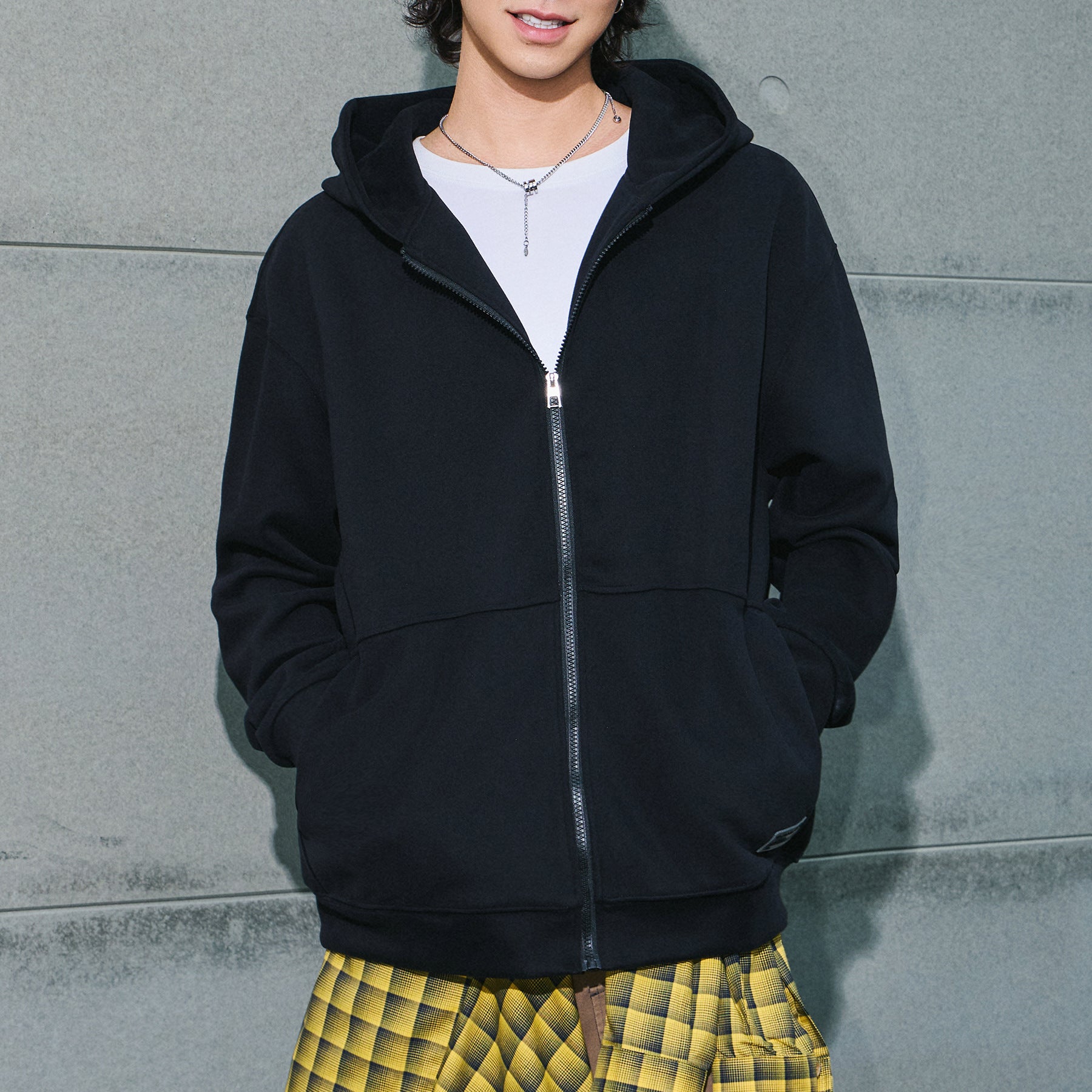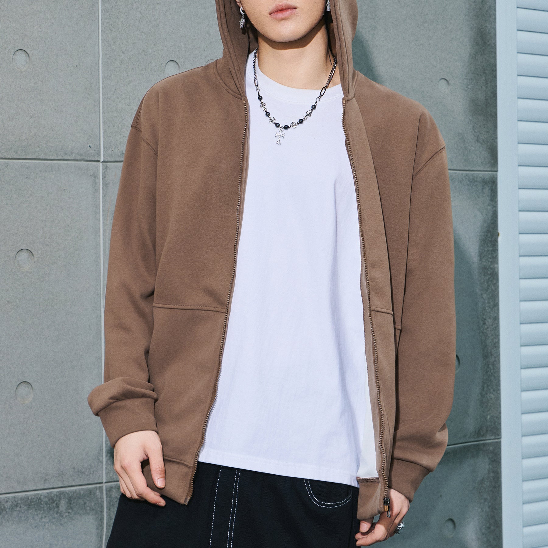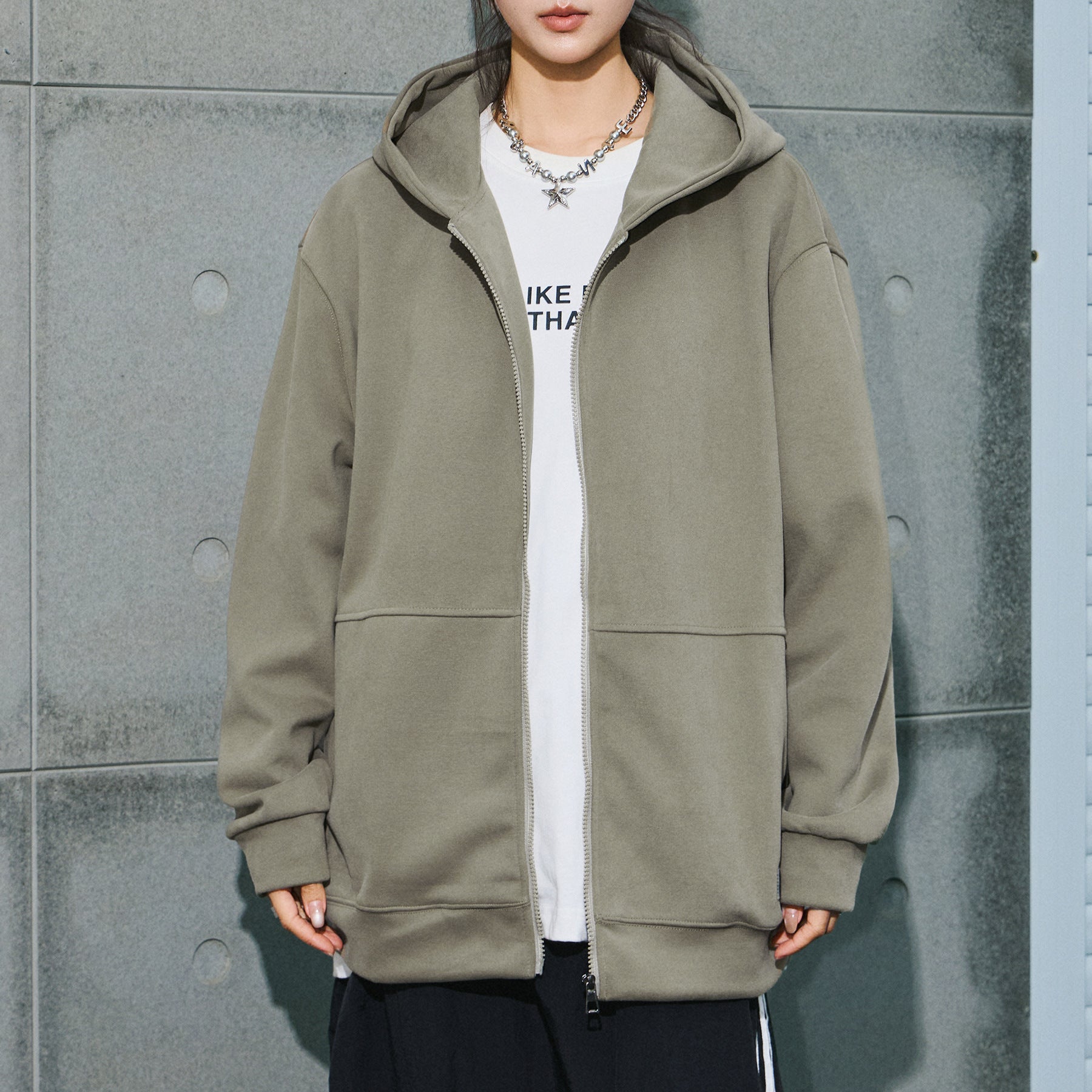 Cozy knit construction with zipped front and hood, ideal layering comfort in cooler weather.