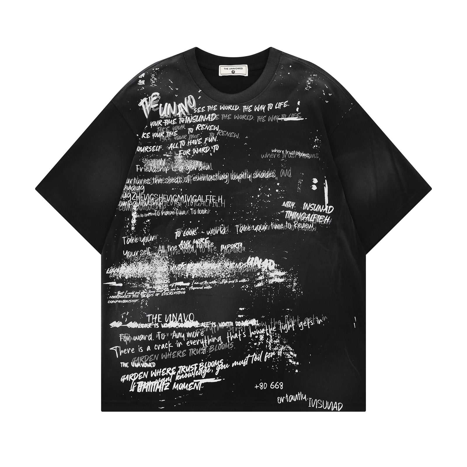 Hand-painted style lettering on loose street tee. Unique and expressive.