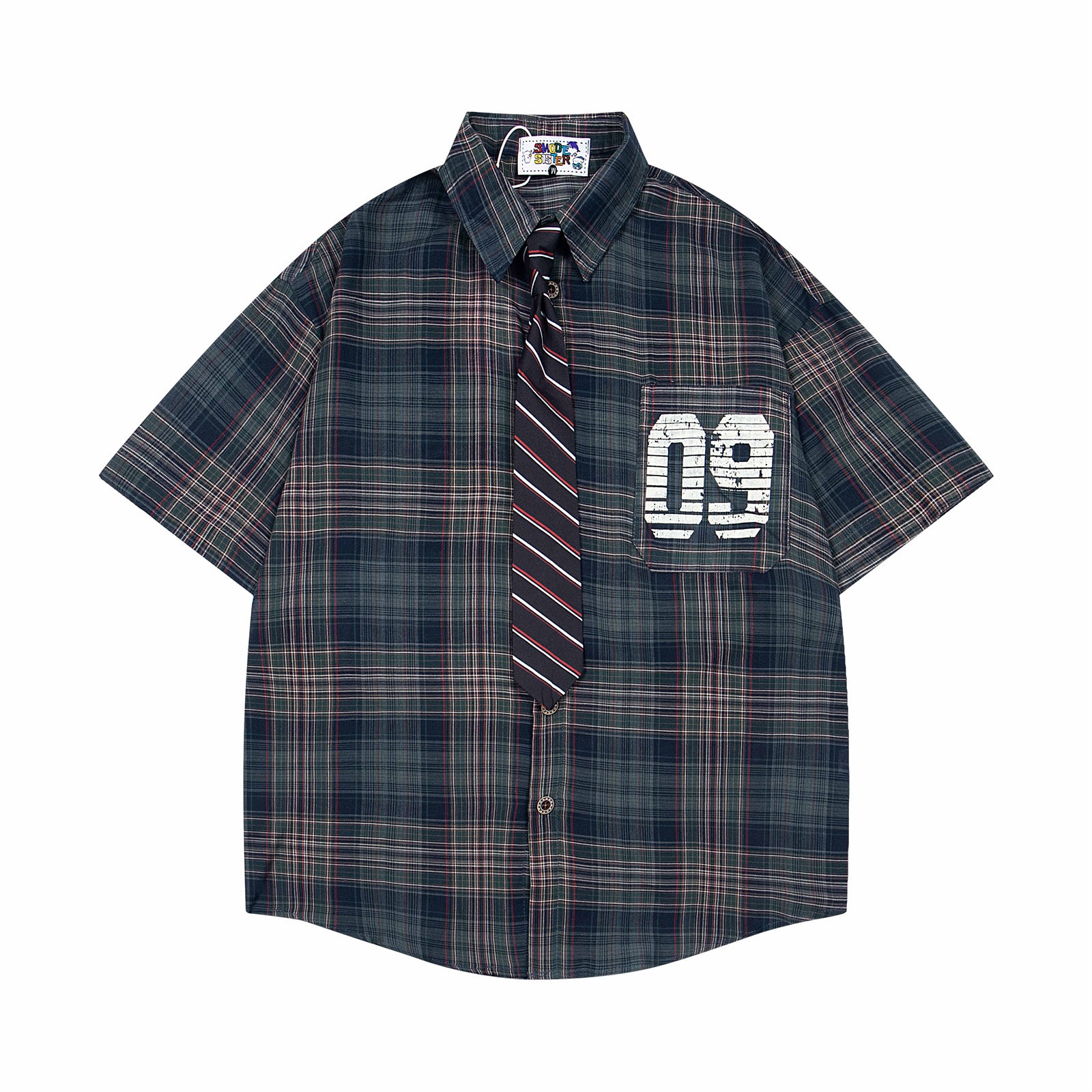 Built like a blouse, styled like a uniform—oversized plaid and a detachable tie seal the look.