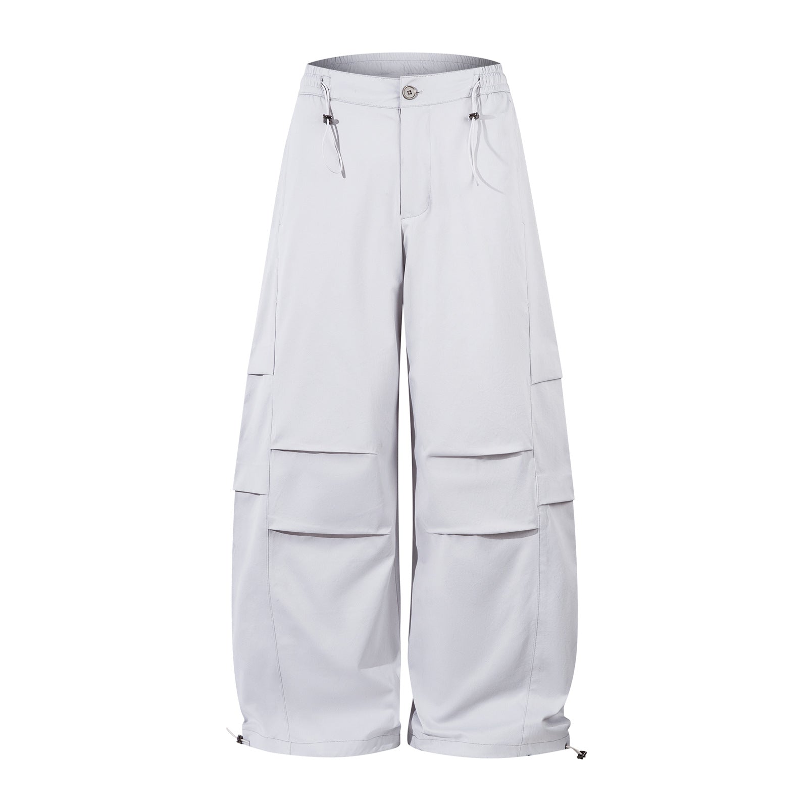 Drawstring taper pants with pleats and utility pockets—designed for structure and ease.