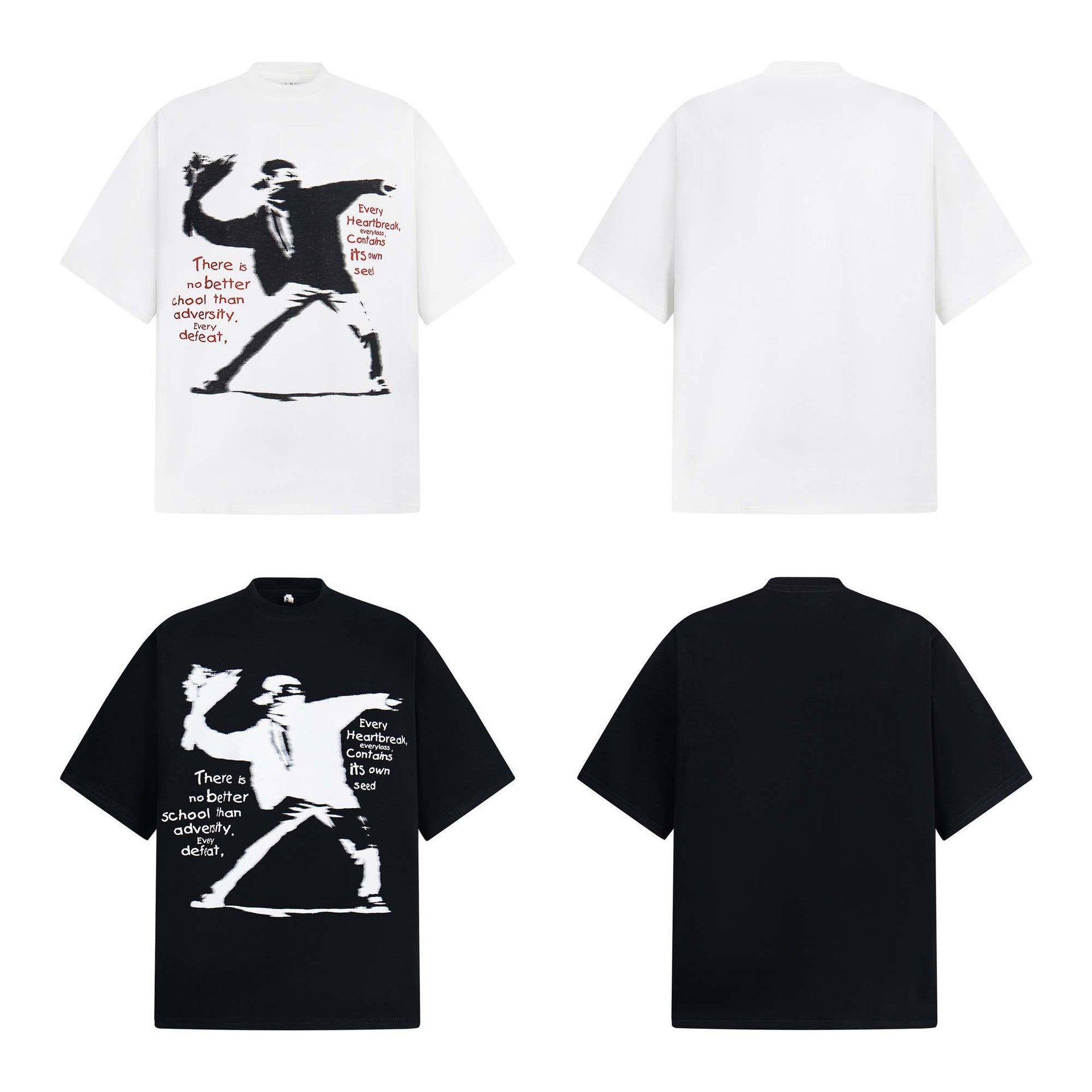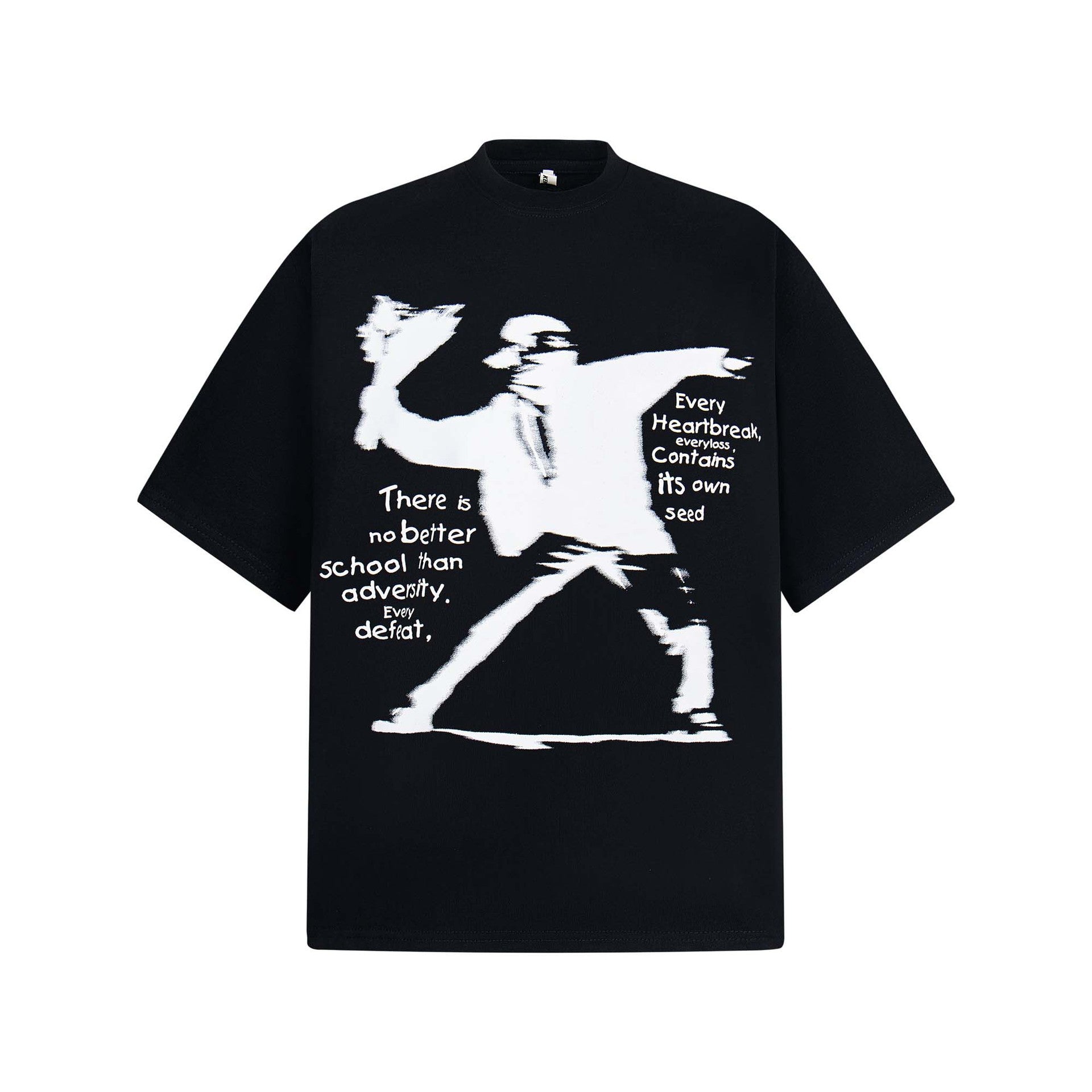 Soft cotton tee with contrast shadow lettering. Fitted across shoulders, relaxed throughout.